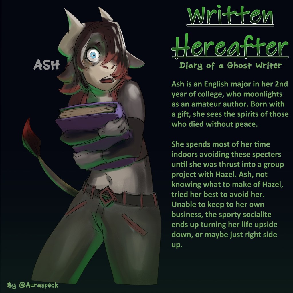 Ash is an English major in her 2nd year of college, who moonlights as an amateur author. Born with a gift, she sees the spirits of those who died without peace. She spends most of her time indoors avoiding these specters until she was thrust into a group project with Hazel. Ash, not knowing what to make of Hazel, tried her best to avoid her. Unable to keep to her own business, the sporty socialite ends up turning her life upside down, or maybe just right side up. “Let’s put those ghosts to rest!”